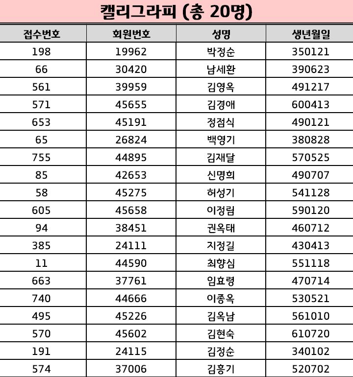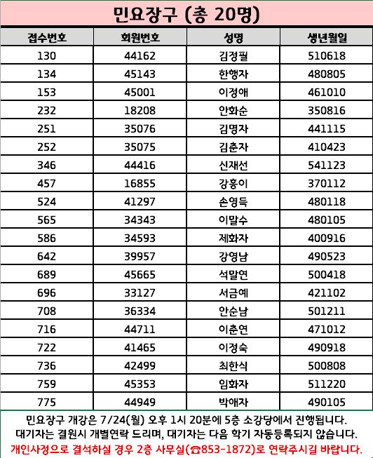 발표 2023년 하반기 평생교육 및 취미여가프로그램 당첨자 공고(명단) 페이지 정보 작성자 관리자 작성일 23-07-07 16:01 조회 5,935회 댓글 0건 본문 첨부파일 합치기.pdf (6.0M) 합치기_1.pdf (2.1M) 이전글2023년 하반기 늘배움교실 수강생 추가 모집 다음글시장형 카페마실사업단 2023년 6월 사업추진현황 정보 공개 목록