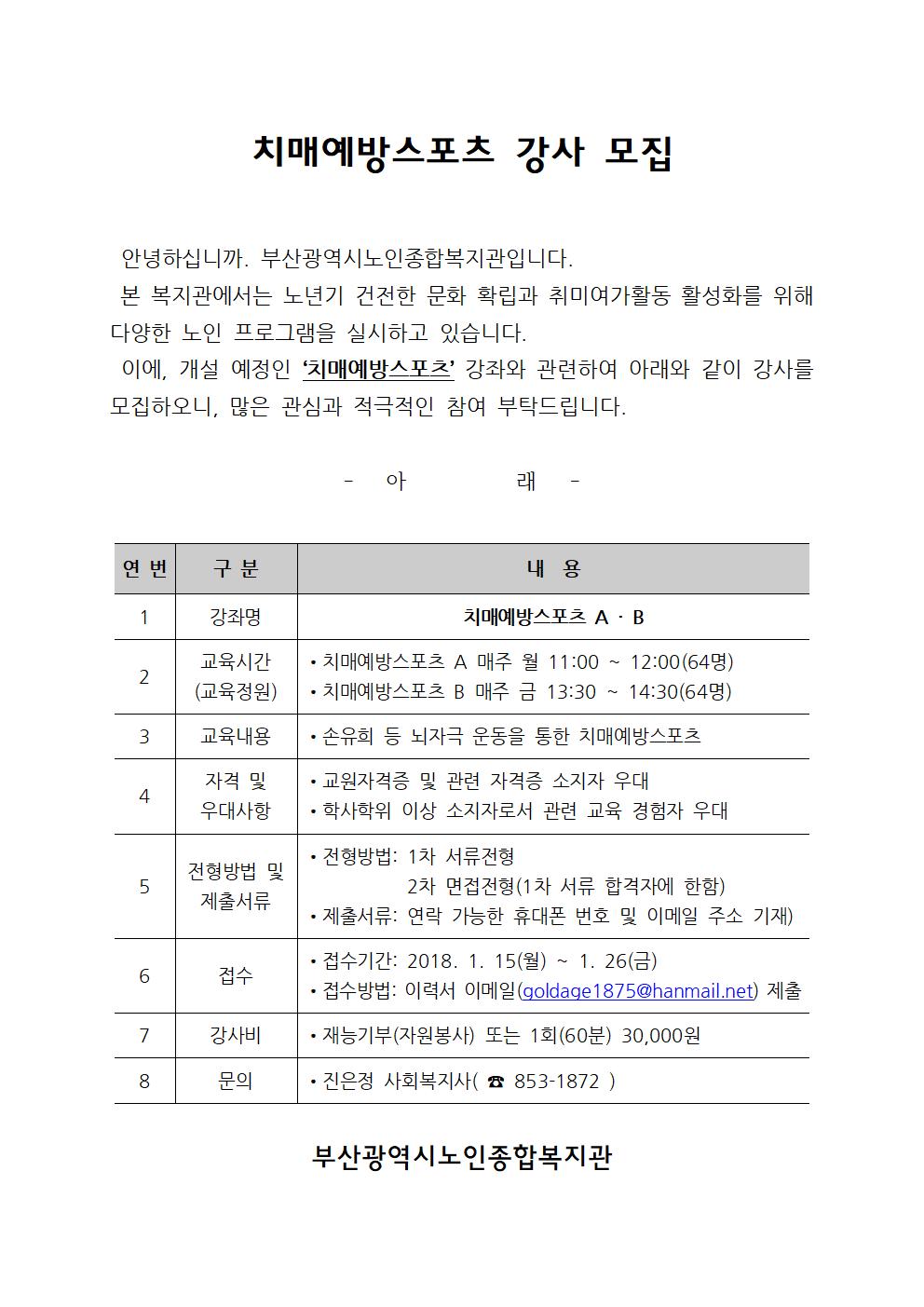 모집 2018년 평생교육지원 및 취미여가지원 사업 신규 강좌 강사 모집 페이지 정보 작성자 진은정 작성일 18-01-15 16:47 조회 19,392회 댓글 0건 본문 이전글컴퓨터 및 스마트폰 교육 당첨자 명단(1기) 다음글컴퓨터 교육 참여자 모집 목록