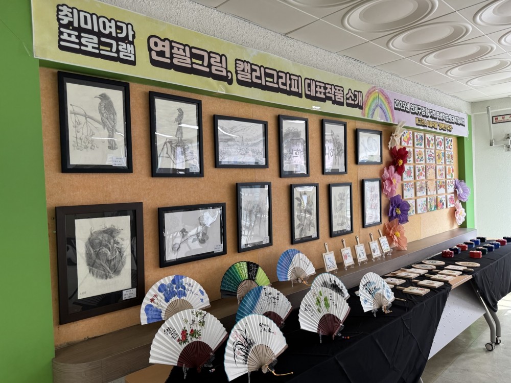 운영하고 있습니다. 상반기 교육 프로그램 종료에 따라 성취감 향상 및 프로그램 홍보를 위해 서예, 사군자, 연필그림, 캘리그라피 미술 작품을 한 자리에 모아